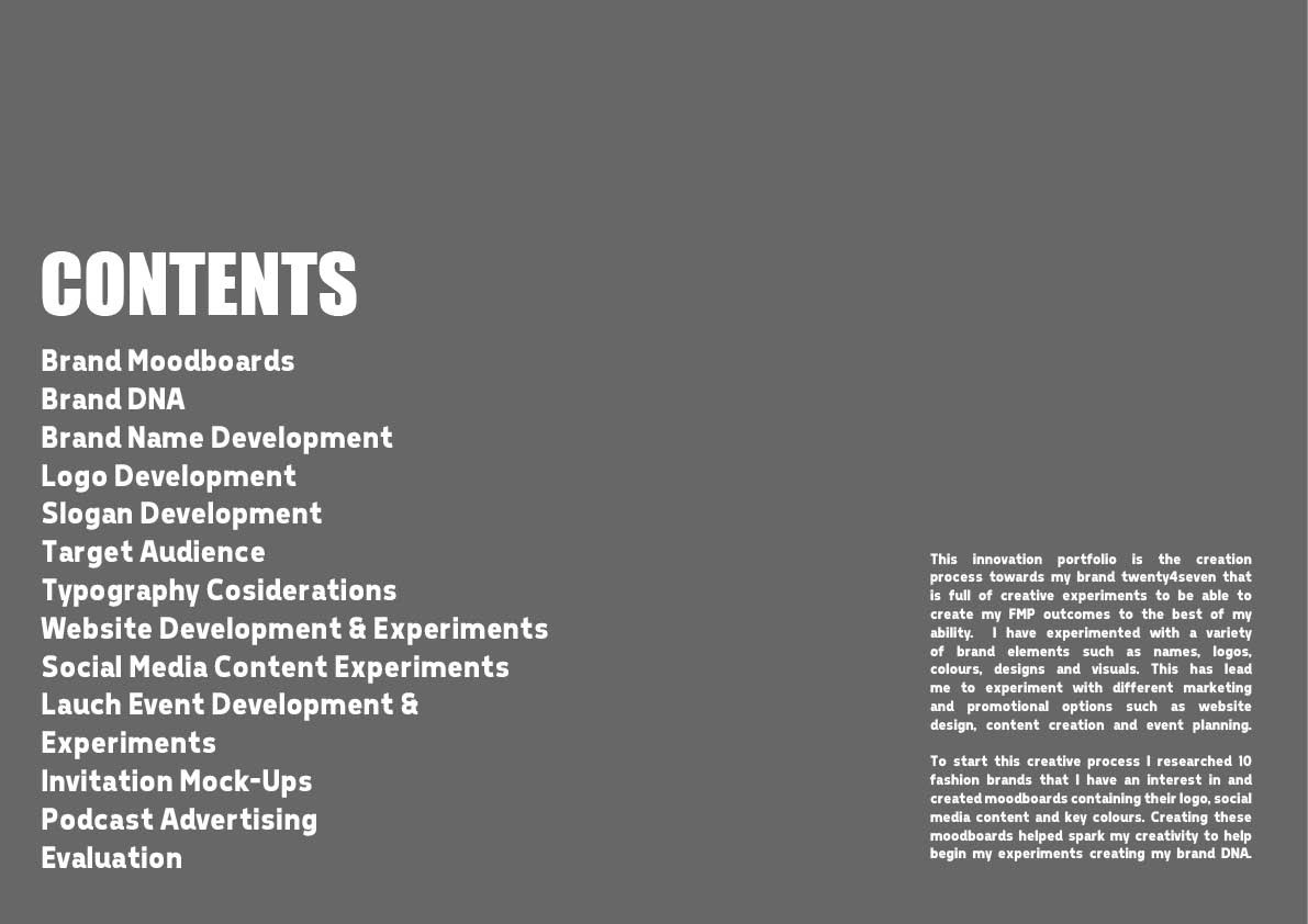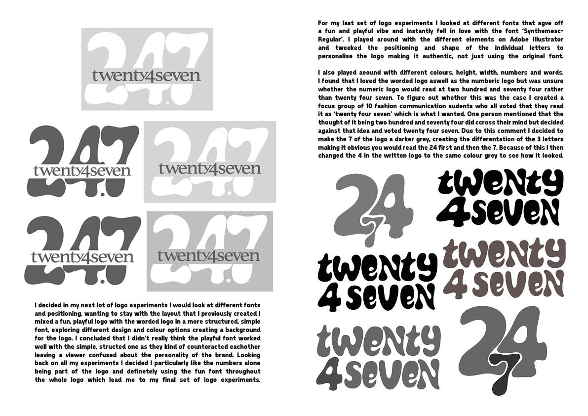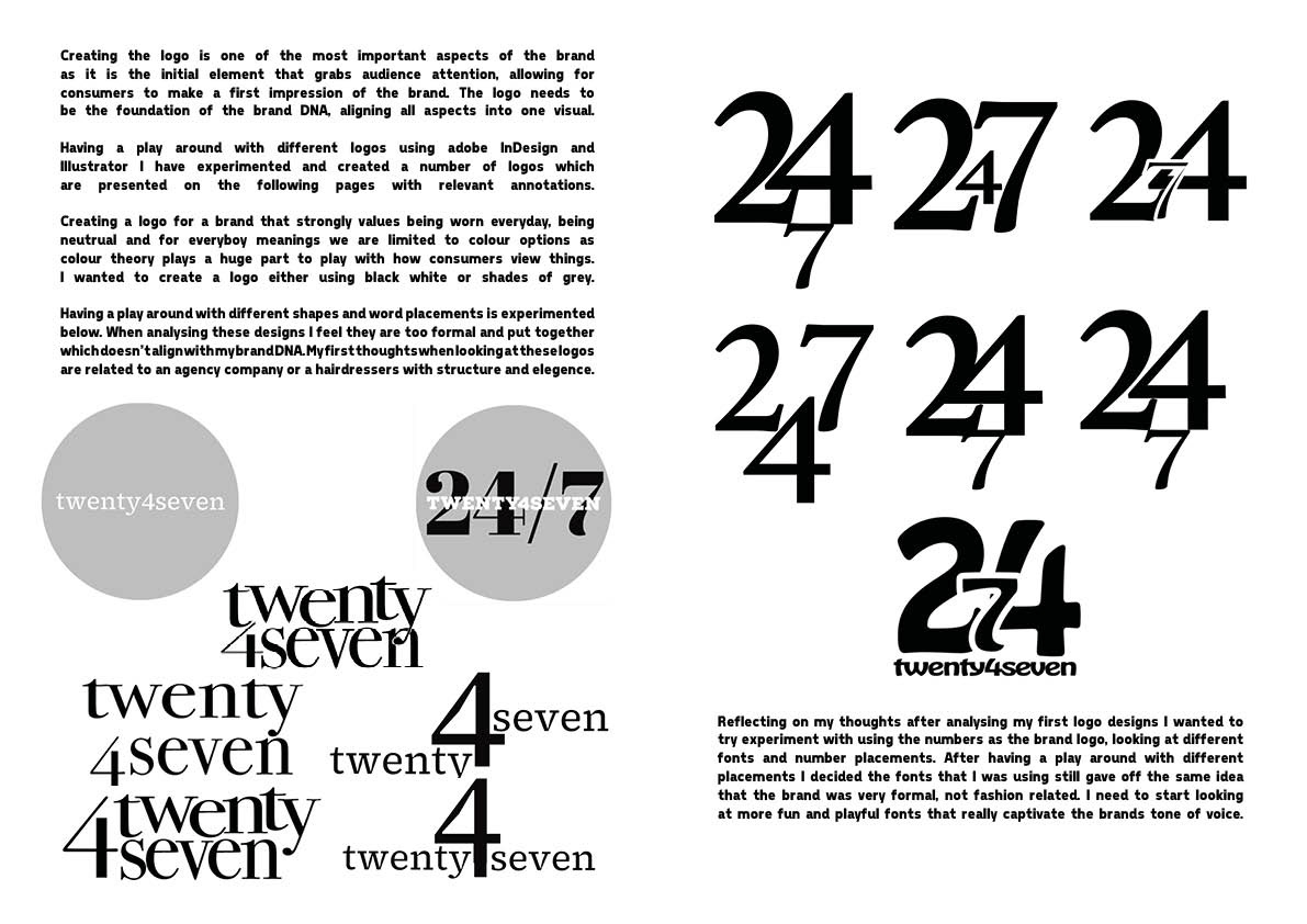 This is the creation process towards my brand twenty4seven that is full of creative experiments to be able to create my final major project outcomes to the best of my ability.
